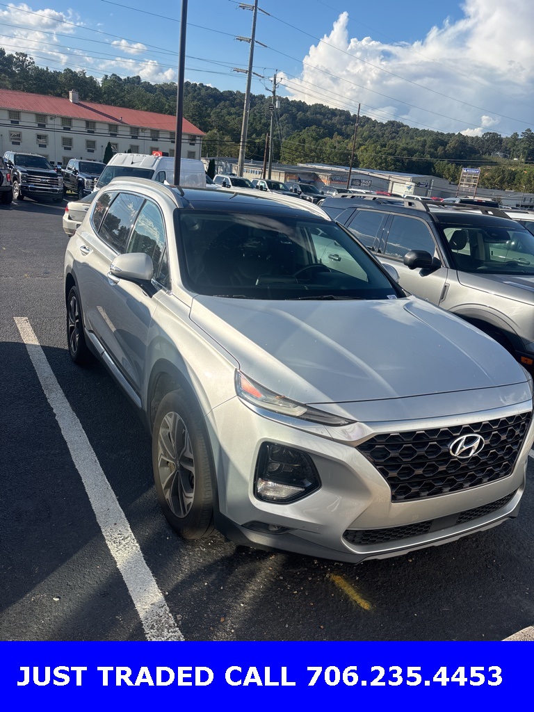 Symphony Silver 2019 Hyundai Santa Fe Limited FWD Limited **LOCAL TRADE**, 7" Color Touchscreen, Android Auto, Apple Carplay, Auto LED Headlights, Backup Camera, Blind Spot Monitoring, Bluetooth w/ Audio Streaming, Driver Attention Warning, Lane Keeping System, Leather Seats, LED Foglights, Limited Package, Parking Sensors, Power Mirror Package, Power Package, Premium Audio Package, Premium Sound Package, Push Button Start, Rear Cross Traffic Alert, Reverse Brake Assist, Reverse Sensing, Safety Package, Sunroof/Moonroof, 4D Sport Utility, 2.0L Turbocharged, 8-Speed Automatic with SHIFTRONIC, FWD, 12 Speakers, 4-Wheel Disc Brakes, ABS brakes, AM/FM radio: SiriusXM, Apple CarPlay & Android Auto, Auto High-beam Headlights, Auto-dimming Rear-View mirror, Automatic temperature control, Compass, Delay-off headlights, Emergency communication system: Blue Link, Exterior Parking Camera Rear, Four wheel independent suspension, Front Center Armrest, Front dual zone A/C, Front fog lights, Fully automatic headlights, Garage door transmitter: HomeLink, Heated door mirrors, Heated Front Bucket Seats, Illuminated entry, Leather Seating Surface, Leather Shift Knob, Leather steering wheel, Low tire pressure warning, Option Group 01, Outside temperature display, Overhead console, Panic alarm, Power door mirrors, Power driver seat, Power Liftgate, Power moonroof, Power passenger seat, Power windows, Radio: Infinity Premium AM/FM/MP3 Display Audio, Rear Parking Sensors, Rear seat center armrest, Rear window wiper, Remote keyless entry, Roof rack: rails only, Security system, Speed control, Speed-sensing steering, Split folding rear seat, Spoiler, Steering wheel mounted audio controls, Telescoping steering wheel, Tilt steering wheel, Traction control, Trip computer, Turn signal indicator mirrors, Variably intermittent wipers, Wheels: 19" x 7.5J Alloy.