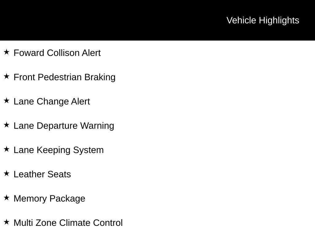 - Lane Keep Assist w/Lane Departure Warning