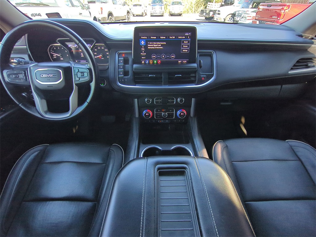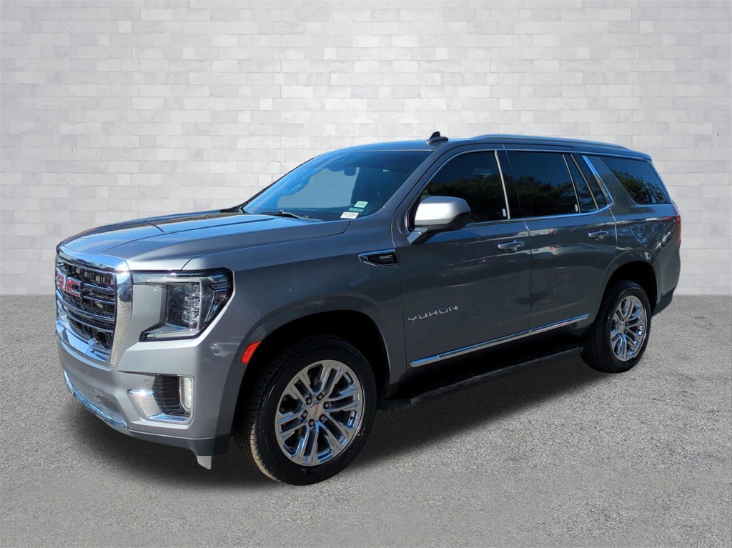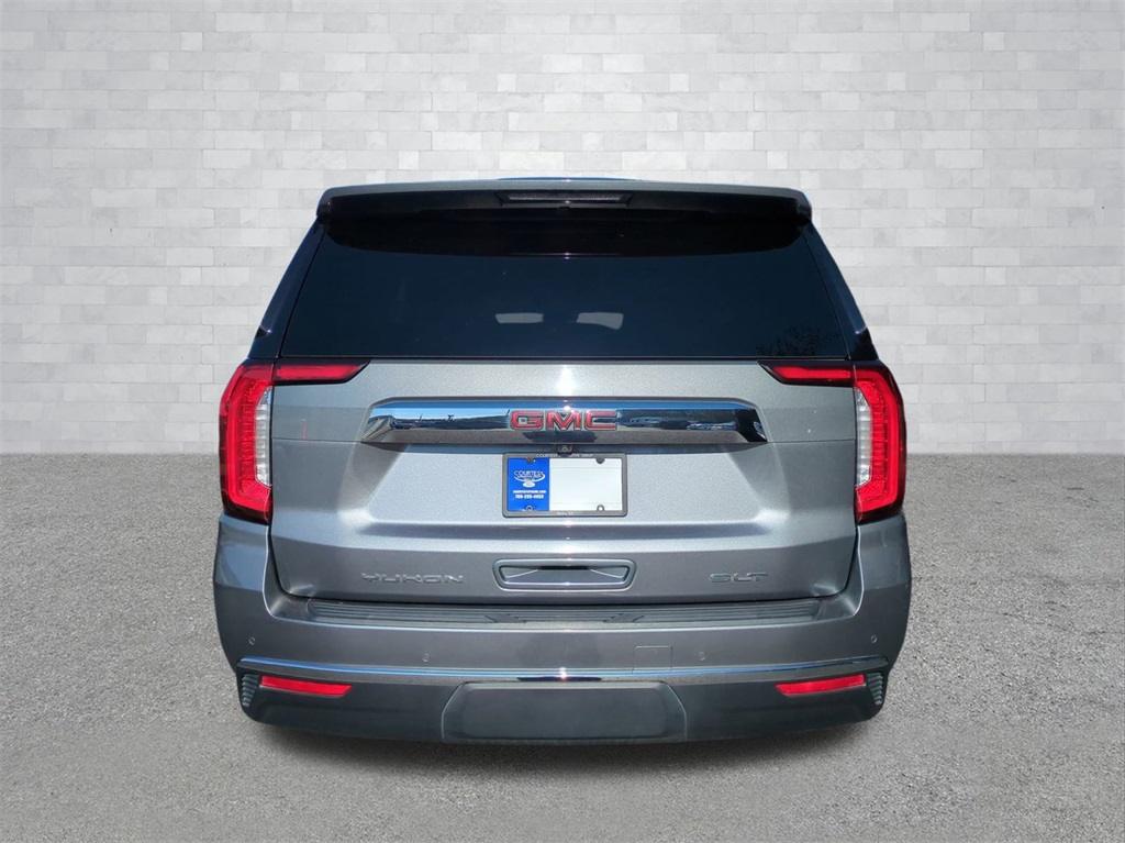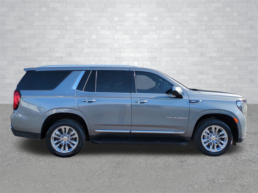 Satin Steel Metallic 2021 GMC Yukon SLT RWD SLT 10.25" Color Touchscreen, 3rd Row Seating, 4G WiFi Hotspot Telematics, Android Auto, Apple Carplay, Auto Emergency Braking, Auto LED Headlights, Backup Camera, Blind Spot Monitoring, Bluetooth w/ Audio Streaming, Bose High End Sound Package, Following Distance Indicator, Foward Collison Alert, Front & Rear Park Assist, Front Pedestrian Braking, HD Surround Vision, Lane Departure Warning, Lane Keeping System, Leather Seats, LED Foglights, Mechanical Limited Slip Differential, Memory Package, Multi Zone Climate Control, Parking Sensors, Power Mirror Package, Power Package, Premium Audio Package, Premium Sound Package, Push Button Start, Rear Climate Package, Rear Cross Traffic Alert, Remote Start, Reverse Brake Assist, Reverse Sensing, Safety Package, SLT Package, Wireless Charging Pad, 4D Sport Utility, EcoTec3 5.3L V8, 10-Speed Automatic with Overdrive, RWD, 12-Way Power Seat Adjusters, 2 Presets For Power Driver Seat, 3rd row seats: split-bench, 4-Wheel Disc Brakes, ABS brakes, AM/FM radio: SiriusXM with 360L, Apple CarPlay/Android Auto, Auto High-beam Headlights, Auto-dimming Rear-View mirror, Automatic Emergency Braking, Automatic temperature control, Bose 9-Speaker Stereo Audio System Feature, Brake assist, Bright Chrome Bodyside Moldings, Bright Front & Rear Door Sill Plates, Chrome Door Handles w/Body-Color Strip, Compass, Delay-off headlights, Electronic Stability Control, Emergency communication system: OnStar and GMC connected services capable, Following Distance Indicator, Forward Collision Alert, Four wheel independent suspension, Front & Rear Park Assist, Front Center Armrest, Front dual zone A/C, Front fog lights, Front Pedestrian Braking, Fully automatic headlights, Garage door transmitter, Hands-Free Power Programmable Rear Liftgate, HD Radio, Heated & Ventilated Driver & Front Passenger Seats, Heated door mirrors, Heated Driver & Front Passenger Seats, Illuminated entry, Inside Rear-View Auto-Dimming Mirror, IntelliBeam Automatic High Beam On/Off, Lane Change Alert w/Side Blind Zone Alert, Lane Keep Assist w/Lane Departure Warning, Leather steering wheel, Low tire pressure warning, Memory seat, Outside temperature display, Overhead console, Panic alarm, Perforated Leather Seating Surfaces, Power door mirrors, Power Liftgate, Power passenger seat, Preferred Equipment Group 4SA, Premium Smooth Ride Suspension, Radio: AM/FM/SiriusXM, Rain sensing wipers, Rear air conditioning, Rear Cross Traffic Alert, Rear seat center armrest, Rear window wiper, Remote keyless entry, Roof rack: rails only, Safety Alert Seat, Security system, SiriusXM w/360L, Speed control, Speed-sensing steering, Split folding rear seat, Spoiler, Steering wheel mounted audio controls, Telescoping steering wheel, Tilt steering wheel, Traction control, Trip computer, Universal Home Remote, Ventilated front seats, Wheels: 20" x 9" 6-Spoke Polished Aluminum.
