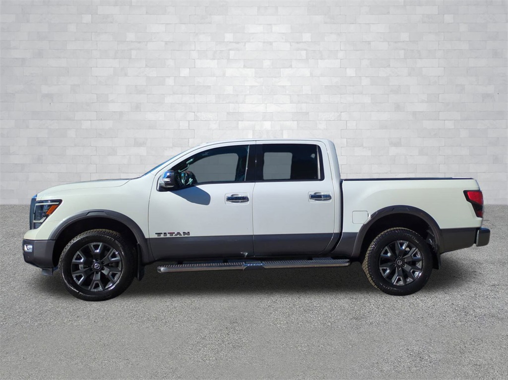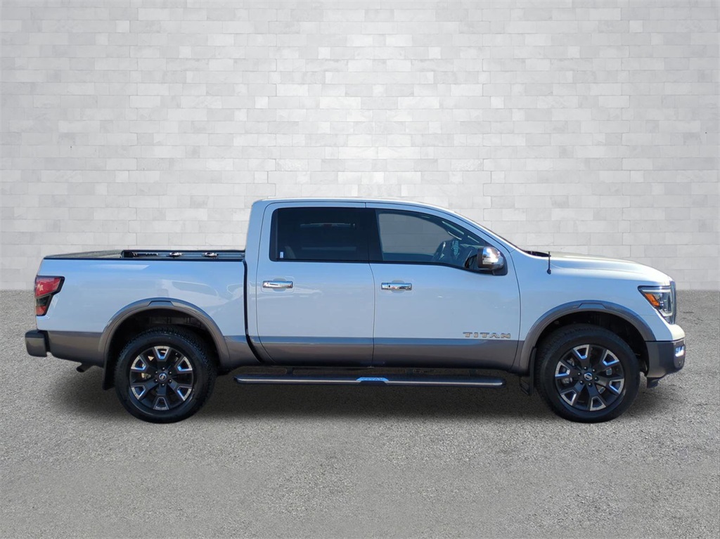 Pearl White Metallic 2021 Nissan Titan Platinum Reserve 4WD 4WD Platinum Reserve 4WD **LOCAL TRADE**, 360-Degree Camera, Android Auto, Apple Carplay, Auto Emergency Braking, Auto LED Headlights, Backup Camera, Blind Spot Monitoring, Bluetooth w/ Audio Streaming, Cold Weather Package, Driver Attention Warning, Foward Collison Alert, Hill Start Assist, Lane Keeping System, Leather Seats, Memory Package, Parking Sensors, Power Mirror Package, Power Package, Power Sliding Rear Window, Push Button Start, Rear Cross Traffic Alert, Remote Start, Reverse Brake Assist, Reverse Sensing, Tow Package, Trailer Package, WiFi Hotspot Capable, 9" Color Touchscreen, 4D Crew Cab, 5.6L V8 DOHC 32V 400hp, 9-Speed Automatic, 4WD, 12 Speakers, 4-Wheel Disc Brakes, ABS brakes, All Season Floor Mats, AM/FM radio: SiriusXM, Auto High-beam Headlights, Auto tilt-away steering wheel, Auto-dimming door mirrors, Auto-dimming Rear-View mirror, Automatic temperature control, Blind Spot Warning, Brake assist, Compass, Delay-off headlights, Electronic Stability Control, Emergency communication system: NissanConnect Services, Exterior Parking Camera Rear, Front Bucket Seats, Front Center Armrest, Front dual zone A/C, Front fog lights, Front wheel independent suspension, Fully automatic headlights, Garage door transmitter: HomeLink, Genuine wood dashboard insert, Genuine wood door panel insert, Heated & Cooled Front Captain's Seats, Heated door mirrors, Heated front seats, Heated rear seats, Heated steering wheel, Illuminated entry, Leather Shift Knob, Leather steering wheel, Low tire pressure warning, Memory seat, Navigation system: NissanConnect Navigation, NissanConnect featuring Apple CarPlay and Android Auto, NissanConnect Services Powered By SiriusXM, Off Road Protection Package, Outside temperature display, Overhead console, Panic alarm, Platinum Reserve Mud Flaps, Power door mirrors, Power driver seat, Premium Leather-Appointed Seat Trim, Radio data system, Radio: NissanConnect w/Navigation, Rain sensing wipers, Rear step bumper, Remote keyless entry, Security system, Speed control, Speed-sensing steering, Speed-Sensitive Wipers, Split folding rear seat, Steering wheel memory, Steering wheel mounted audio controls, Telescoping steering wheel, Tilt steering wheel, Traction control, Trip computer, Turn signal indicator mirrors, Ventilated front seats, Wheels: 20" x 8" Dark Painted & Machined Clad.
