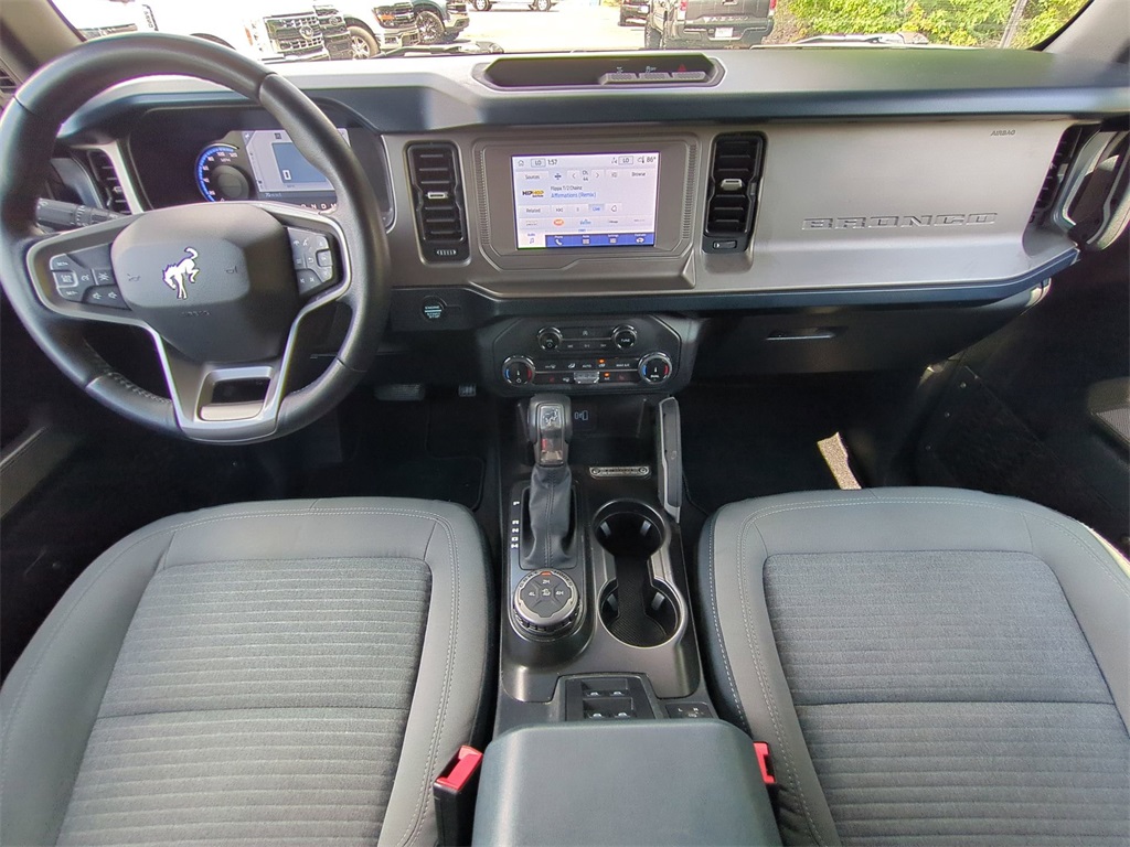 Cactus Gray 2022 Ford Bronco Outer Banks 4WD 4WD Outer Banks 4WD 4G WiFi Hotspot Telematics, 8" Color Touchscreen, Backup Camera, Hill Start Assist, Push Button Start, 4D Sport Utility, 2.3L EcoBoost I-4, 10-Speed Automatic, 4WD, 4-Wheel Disc Brakes, ABS brakes, Air Conditioning, AM/FM radio: SiriusXM with 360L, Auto High-beam Headlights, Brake assist, Carbonized Gray Molded-In-Color Hard Top, Compass, Delay-off headlights, Electronic Stability Control, Emergency communication system: 911 Assist, Equipment Group 312A Mid Package, Exterior Parking Camera Rear, Front Bucket Seats, Front Center Armrest, Front Row Top Panels Storage Bag, Front wheel independent suspension, Fully automatic headlights, Hard Top Sound Deadening Headliner, Heated door mirrors, Illuminated entry, Integrated roll-over protection, Low tire pressure warning, Outside temperature display, Overhead console, Panic alarm, Power steering, Power windows, Radio data system, Rear-Window Defroster & Washer, Remote keyless entry, Security system, SiriusXM Radio w/360L, Split folding rear seat, Steering wheel mounted audio controls, SYNC 4, Telescoping steering wheel, Tilt steering wheel, Traction control, Trip computer, Variably intermittent wipers.