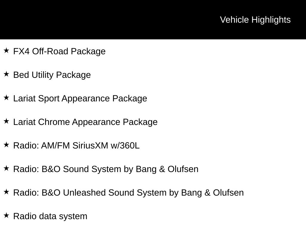 Enhancing the driving experience, this F-150 is equipped with a host of advanced safety and technology features, including Ford Co-Pilot360 Active 2.0, which offers innovative driver-assist systems like BlueCruise, Active Park Assist 2.0, and a 360-degree camera. The premium B&O Unleashed Sound System by Bang & Olufsen will elevate your audio experience, while the wireless charging pad and 4G WiFi hotspot keep you connected on the go.