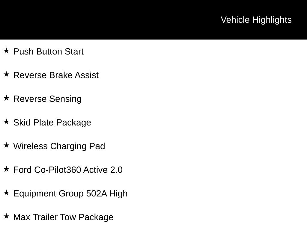For those who value versatility and utility, the Bed Utility Package, Power Tailgate, and Pro Power Onboard 2kW system make this F-150 a true workhorse. The extended-range 36-gallon fuel tank and Max Trailer Tow Package further enhance its capabilities, allowing you to tackle longer journeys and tow with confidence.