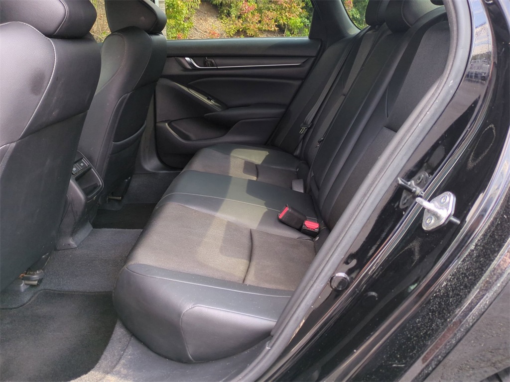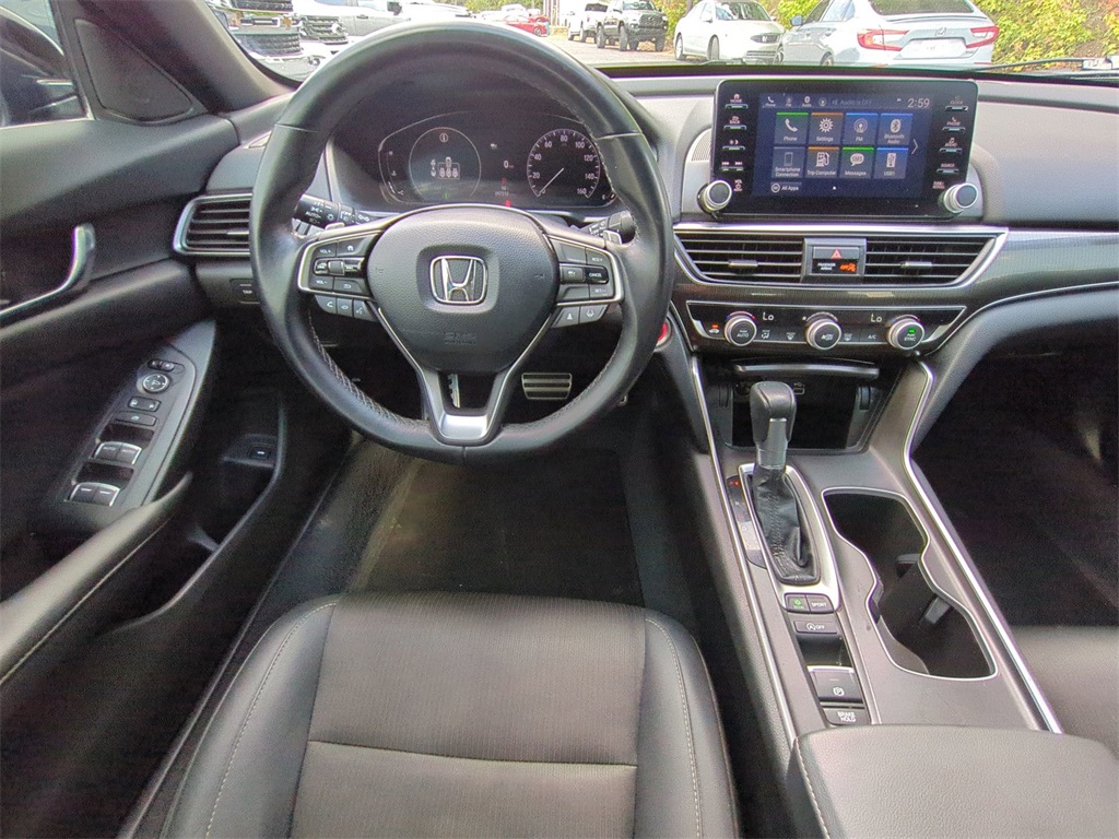 Crystal Black Pearl 2022 Honda Accord Sport FWD Sport 8" Color Touchscreen, Adaptive Cruise Control, Android Auto, Apple Carplay, Auto Emergency Braking, Backup Camera, Bluetooth w/ Audio Streaming, Driver Attention Warning, Foward Collison Alert, Power Mirror Package, Power Package, Sport Package, 4D Sedan, 1.5T I4 DOHC 16V Turbocharged VTEC, CVT, FWD, 4-Wheel Disc Brakes, 8 Speakers, ABS brakes, Adaptive Cruise Control: Adaptive Cruise Control (ACC) with Low-Speed Follow, Apple CarPlay/Android Auto, Auto High-beam Headlights, Automatic temperature control, Brake assist, Delay-off headlights, Electronic Stability Control, Emergency communication system: HondaLink, Exterior Parking Camera Rear, Fabric w/Synthetic Leather Seat Trim, Forward collision: Collision Mitigation Braking System (CMBS) + FCW mitigation, Four wheel independent suspension, Front Center Armrest, Front dual zone A/C, Front fog lights, Fully automatic headlights, Illuminated entry, Lane Departure Warning System, Leather Shift Knob, Leather steering wheel, Low tire pressure warning, Outside temperature display, Overhead console, Panic alarm, Power door mirrors, Power driver seat, Power steering, Power windows, Radio data system, Radio: 180-Watt AM/FM Audio System, Rear seat center armrest, Remote keyless entry, Security system, Speed-sensing steering, Speed-Sensitive Wipers, Split folding rear seat, Spoiler, Steering wheel mounted audio controls, Telescoping steering wheel, Tilt steering wheel, Traction control, Trip computer, Wheels: 19" Machine-Finished Alloy w/Black Inserts.
