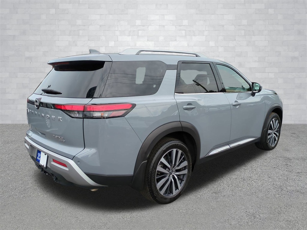 Boulder Gray Pearl 2022 Nissan Pathfinder Platinum 4WD 4WD Platinum 4WD 12.3" HD Color Driver Cluster, 360-Degree Camera, 3rd Row Seating, Android Auto, Apple Carplay, Auto Emergency Braking, Auto LED Headlights, Backup Camera, Blind Spot Monitoring, Bluetooth w/ Audio Streaming, Bose High End Sound Package, Cold Weather Package, Foward Collison Alert, Front & Rear Park Assist, Lane Departure Warning, Lane Keeping System, Leather Seats, LED Foglights, Memory Package, Multi Zone Climate Control, Panoramic Sunroof/Moonroof, Parking Sensors, Power Mirror Package, Power Package, Premium Sound Package, Push Button Start, Rear Climate Package, Rear Cross Traffic Alert, Remote Start, Reverse Brake Assist, Reverse Sensing, Safety Package, Third Row Seating, Tow Package, Traffic Sign Recognition, Trailer Package, Wireless Charging Pad, 4D Sport Utility, V6, 9-Speed Automatic, 4WD, 13 Speakers, 3rd row seats: bench, 4-Wheel Disc Brakes, ABS brakes, AM/FM radio: SiriusXM, Auto High-beam Headlights, Auto tilt-away steering wheel, Auto-dimming Rear-View mirror, Automatic temperature control, Bose Premium Audio System, Brake assist, Cargo Area Protector, Cargo Net, Cargo Package, Climate Controlled Front Bucket Seats, Delay-off headlights, Electronic Stability Control, Emergency communication system: NissanConnect Services, Exterior Parking Camera Rear, First Aid Kit, Four wheel independent suspension, Front Center Armrest, Front dual zone A/C, Front fog lights, Fully automatic headlights, Garage door transmitter: HomeLink, Heads-Up Display, Heated door mirrors, Heated front seats, Heated steering wheel, Illuminated entry, Leather steering wheel, Low tire pressure warning, Memory seat, Navigation system: NissanConnect Navigation, Outside temperature display, Overhead console, Panic alarm, Platinum Bench Seat Package, Power door mirrors, Power moonroof, Power passenger seat, Radio data system, Rain sensing wipers, Rear air conditioning, Rear window wiper, Remote keyless entry, Security system, Semi-Aniline Leather Seating Surfaces, Speed-sensing steering, Speed-Sensitive Wipers, Split folding rear seat, Spoiler, Steering wheel memory, Steering wheel mounted audio controls, Telescoping steering wheel, Tilt steering wheel, Traction control, Trip computer, Turn signal indicator mirrors, Ventilated front seats, Wheels: 20" Alloy w/Unique Finish.