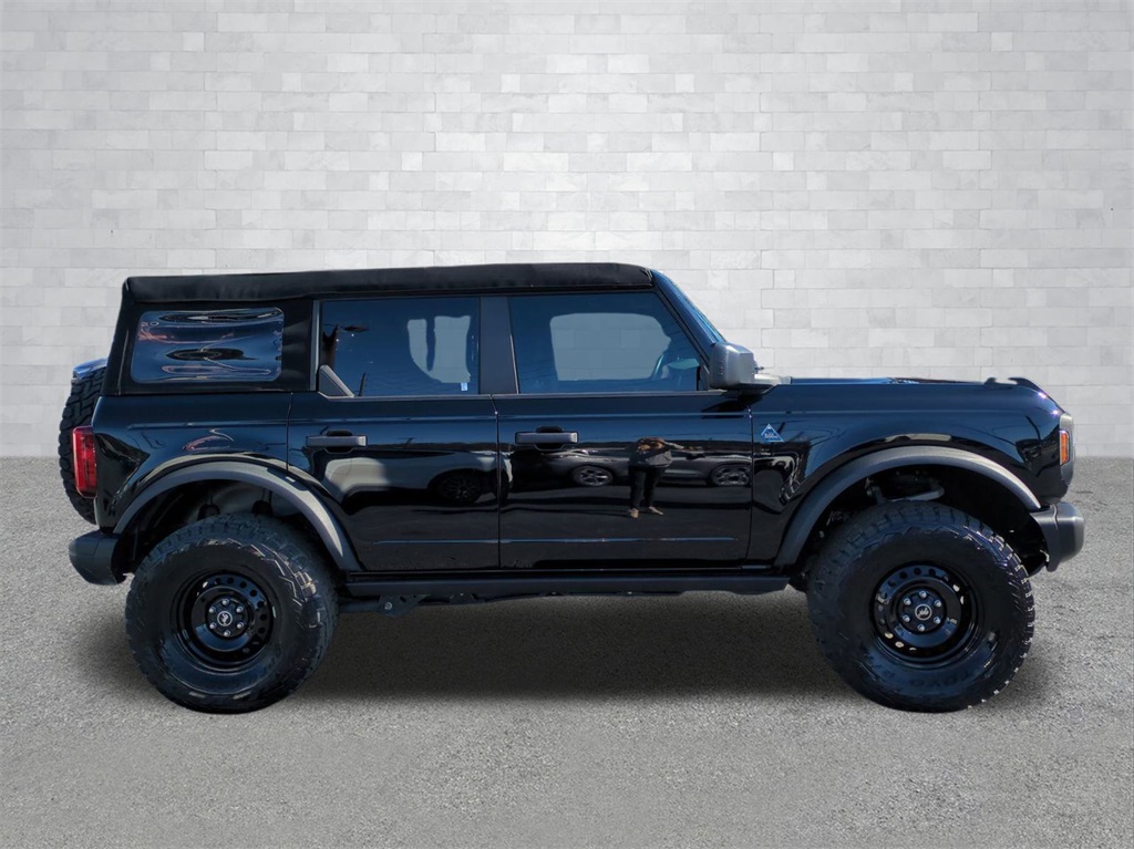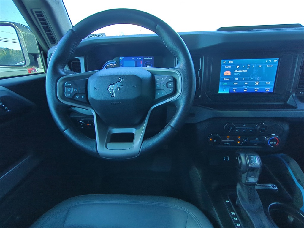 Shadow Black 2023 Ford Bronco Black Diamond 4WD Black Diamond **LOCAL TRADE**, 4G WiFi Hotspot Telematics, Auto LED Headlights, Backup Camera, Hill Start Assist, Off Road Package, Pre Collision Assist w/ AEB, Push Button Start, Skid Plate Package, 4D Sport Utility, 2.7L EcoBoost V6, 10-Speed Automatic, 4WD, 4-Wheel Disc Brakes, 7 Speakers, ABS brakes, AM/FM radio: SiriusXM with 360L, Auto High-beam Headlights, Brake assist, Compass, Delay-off headlights, Electronic Stability Control, Emergency communication system: 911 Assist, Equipment Group 321A Standard Package, Exterior Parking Camera Rear, Front Center Armrest, Front wheel independent suspension, Fully automatic headlights, Heated door mirrors, Illuminated entry, Integrated roll-over protection, Low tire pressure warning, Outside temperature display, Overhead console, Panic alarm, Passenger vanity mirror, Power door mirrors, Power steering, Power windows, Radio data system, Remote keyless entry, Security system, SiriusXM Radio w/360L, Split folding rear seat, Steering wheel mounted audio controls, SYNC 4, Telescoping steering wheel, Tilt steering wheel, Traction control, Trip computer, Variably intermittent wipers, Wheels: 17" Black Gloss-Painted Steel.