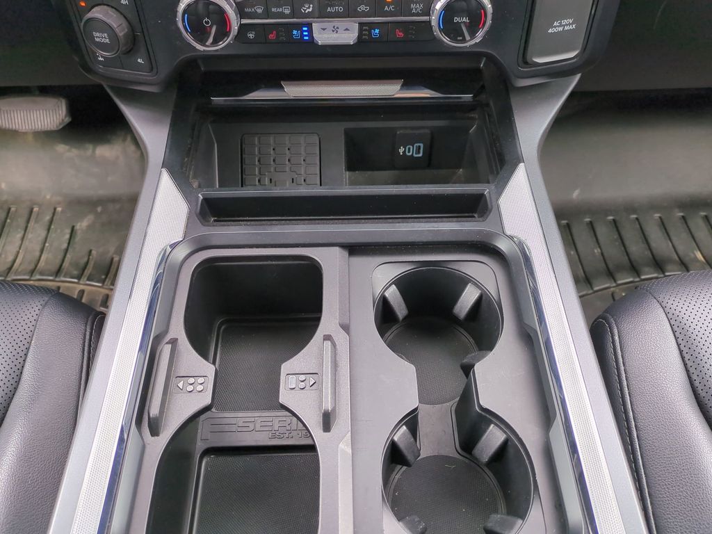 Versatility is the name of the game with this Ford. Whether you're hauling a heavy load, towing a trailer, or simply enjoying the comfort of the leather-wrapped interior, this F-350 is up to the task. The spacious cabin, with its heated and ventilated front seats, dual-zone climate control, and wireless charging, ensures a premium driving experience every time you get behind the wheel.