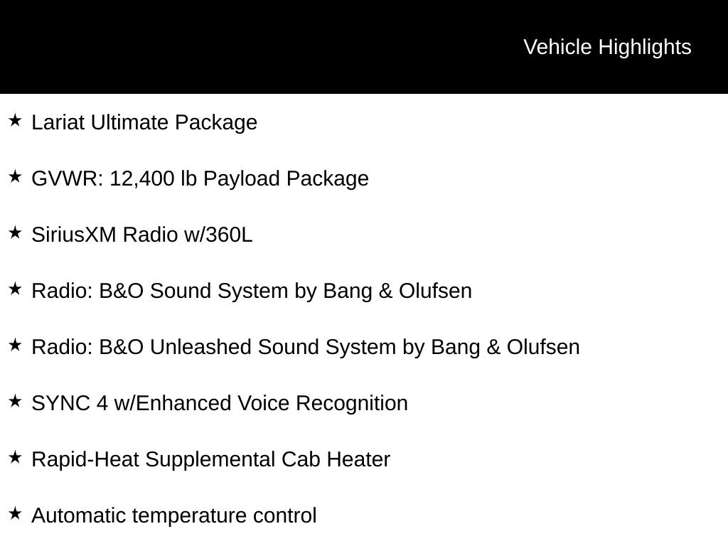 The Lariat Ultimate Package takes this F-350 to the next level, adding features like Intelligent Adaptive Cruise Control, Head-Up Display, and a premium Bang & Olufsen sound system. Combined with the FX4 Off-Road Package, this truck is ready to tackle any terrain with confidence, thanks to its specially tuned shocks, skid plates, and electronic-locking rear differential.