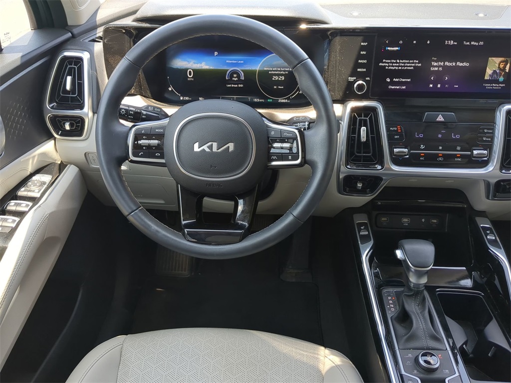 Everlasting Silver 2023 Kia Sorento SX AWD AWD SX AWD **LOCAL TRADE**, 10.25" Color Touchscreen, 12.3" HD Color Driver Cluster, Android Auto, Apple Carplay, Auto LED Headlights, Backup Camera, Blind Spot Monitoring, Bluetooth w/ Audio Streaming, Driver Attention Warning, Foward Collison Alert, Lane Departure Warning, Lane Keeping System, LED Foglights, LED Projector Headlights, Panoramic Sunroof/Moonroof, Parking Sensors, Power Mirror Package, Power Package, Rear Cross Traffic Alert, Reverse Brake Assist, Reverse Sensing, Safety Package, Wireless Charging Pad, 4D Sport Utility, 2.5L I4 DGI Turbocharged DOHC 16V LEV3-ULEV70 281hp, 8-Speed DCT, AWD, 3rd row seats: split-bench, 4-Wheel Disc Brakes, ABS brakes, AM/FM radio: SiriusXM, Apple CarPlay & Android Auto, Auto High-beam Headlights, Auto-dimming Rear-View mirror, Automatic temperature control, Brake assist, Delay-off headlights, Electronic Stability Control, Emergency communication system, Exterior Parking Camera Rear, Four wheel independent suspension, Front Center Armrest, Front dual zone A/C, Front fog lights, Fully automatic headlights, Heated door mirrors, Heated Front Bucket Seats, Illuminated entry, Leather steering wheel, Low tire pressure warning, Navigation System, Outside temperature display, Overhead console, Panic alarm, Power door mirrors, Power driver seat, Power Liftgate, Power passenger seat, Power steering, Power windows, Radio data system, Radio: AM/FM Audio System, Rain sensing wipers, Rear air conditioning, Rear window wiper, Remote keyless entry, Roof rack: rails only, Security system, Smart Key w/ Push Button and Remote Start, Speed control, Speed-sensing steering, Split folding rear seat, Spoiler, Steering wheel mounted audio controls, SynTex Artificial Leather Seat Trim, Telescoping steering wheel, Tilt steering wheel, Traction control, Trip computer, Turn signal indicator mirrors, Wheels: 8.5J x 20" Gloss Black Alloy.