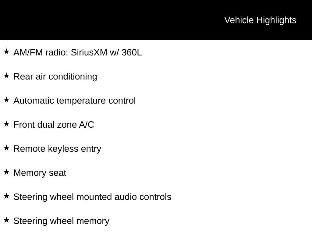 - AM/FM radio: SiriusXM w/ 360L