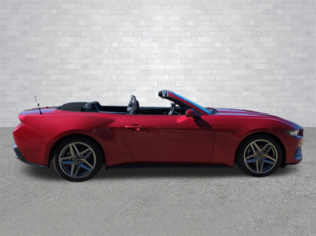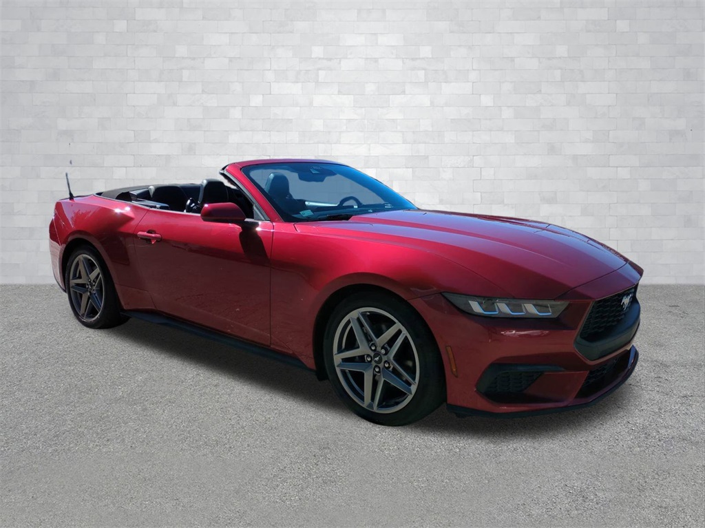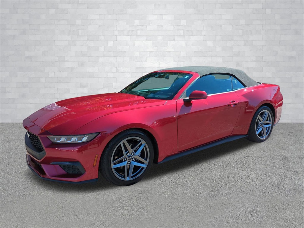 Ruby Red 2024 Ford Mustang Convertible RWD Convertible 12.4" LCD Digital Driver Cluster, 13.4" HD Color Touchscreen, 4G WiFi Hotspot Telematics, Active Valve Performance Exhaust, Auto LED Headlights, Backup Camera, Power Mirror Package, Power Package, Push Button Start, 2D Convertible, EcoBoost 2.3L I4 GTDi DOHC Turbocharged VCT, 10-Speed Automatic, RWD, 4-Wheel Disc Brakes, 9-Speaker Stereo System, ABS brakes, Active Valve Performance Exhaust, AM/FM radio: SiriusXM with 360L, Auto High-beam Headlights, Automatic temperature control, Brake assist, Compass, Convertible roof lining, Delay-off headlights, Dual-Zone Electronic Automatic Temperature Control, Electronic Stability Control, Emergency communication system: 911 Assist, Equipment Group 101A High Package, Exterior Parking Camera Rear, Four wheel independent suspension, Front Bucket Seats, Front Center Armrest, Front dual zone A/C, Fully automatic headlights, Glass rear window, Heated front seats, Illuminated entry, Leather Shift Knob, Low tire pressure warning, Outside temperature display, Overhead console, Panic alarm, Power door mirrors, Power driver seat, Power steering, Power windows, Premium Floor Liners Front & Rear, Radio data system, Rain sensing wipers, Rear Parking Sensors, Remote keyless entry, Security system, SiriusXM w/360L & HD Radio, Speed control, Speed-sensing steering, Speed-Sensitive Wipers, Sport steering wheel, Steering wheel mounted audio controls, SYNC 4.0 QNX, Telescoping steering wheel, Tilt steering wheel, Traction control, Trip computer, Wheels: 19" x 8.5" Premier Polished Aluminum.