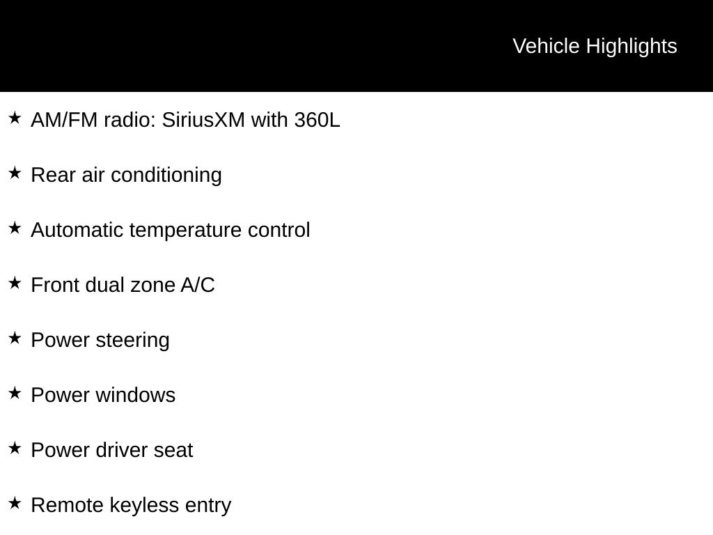 - AM/FM radio: SiriusXM with 360L