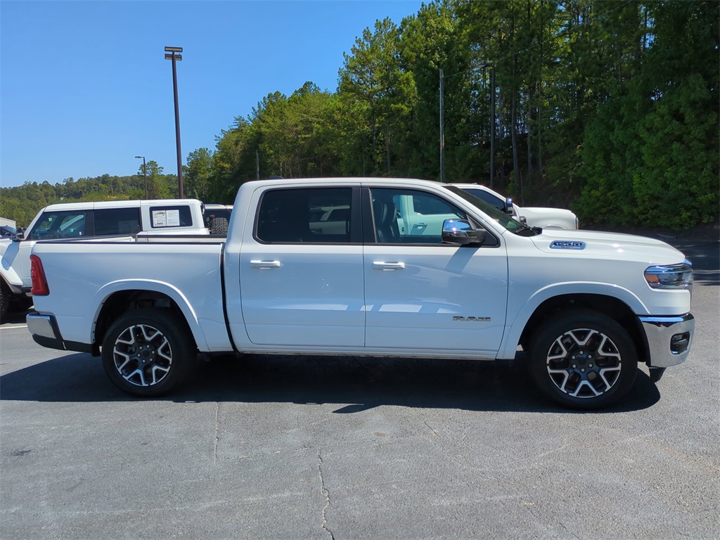 Bright White Clearcoat 2025 Ram 1500 Laramie 4WD Laramie 12" LCD Productivity Touchscreen, Android Auto, Apple Carplay, Auto Emergency Braking, Auto LED Headlights, Backup Camera, Blind Spot Monitoring, Bluetooth w/ Audio Streaming, Cold Weather Package, Front Pedestrian Braking, Full Speed Auto Collision Warning Plus, Lane Keeping System, Leather Seats, LED Foglights, Memory Package, Parking Sensors, Power Mirror Package, Power Package, Preferred Equipment Package, Push Button Start, Rear Cross Traffic Alert, Remote Start, Reverse Brake Assist, Reverse Sensing, Safety Package, Tow Package, Trailer Package, 4D Crew Cab, 3.0L I6, 8-Speed Automatic, 4WD, 10 Speakers, 4 Way Front Headrests, 4-Wheel Disc Brakes, 4G LTE Wi-Fi Hot Spot, ABS brakes, Apple CarPlay/Android Auto, Auto High-beam Headlights, Auto Power-Folding Mirrors, Auto-dimming door mirrors, Auto-Dimming Exterior Driver Mirror, Auto-dimming Rear-View mirror, Automatic temperature control, Brake assist, Chrome Exterior Mirrors, Compass, Convex Wide-Angle Exterior Mirror Insert, Delay-off headlights, Driver Seat Memory, Electronic Stability Control, Exterior Mirrors Courtesy Lamps, Exterior Mirrors w/Heating Element, Exterior Mirrors w/Memory, Exterior Mirrors w/Supplemental Signals, Front Center Armrest w/Storage, Front fog lights, Front wheel independent suspension, Fully automatic headlights, Garage door transmitter, GPS Antenna Input, GPS Navigation, HD Radio, Heated door mirrors, Heated Steering Wheel, Illuminated entry, Integrated Voice Command w/Bluetooth, Laramie Level 1 Equipment Group, Leather steering wheel, Leather Trim 40/20/40 Bench Seat, Low tire pressure warning, Memory seat, Navigation System, Outside temperature display, Overhead console, Panic alarm, ParkView Rear Back-Up Camera, Power Adjust 8-Way Front Passenger Seat, Power door mirrors, Power passenger seat, Quick Order Package 21H Laramie, Radio data system, Radio: Uconnect 5 Nav w/12.0" Display, Rain Sensitive Windshield Wipers, Rear seat center armrest, Rear step bumper, Remote keyless entry, Remote Tailgate Release, Security system, SiriusXM w/360L, Speed control, Split folding rear seat, Steering wheel mounted audio controls, Telescoping steering wheel, Tilt steering wheel, Traction control, Trip computer, Turn signal indicator mirrors, USB Host Flip, Ventilated Front Seats, Wheels: 20" x 9" Premium Paint/Polish.